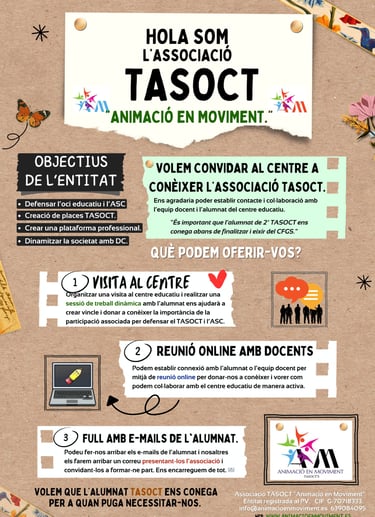 Ens trobem en plena campanya de contactes amb centres educatius, amb l'objectiu de crear relacions de col·laboració per a que l'alumnat de TASOCT ens conega. Volem que l'alumnat TASOCT ens conega per a quan puga necessitar-nos.